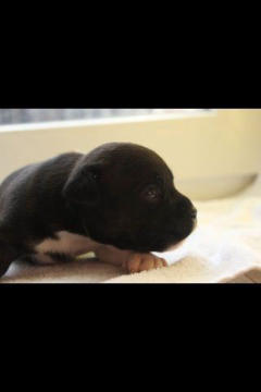 Hündin,schwarz mit weißen Abzeichen